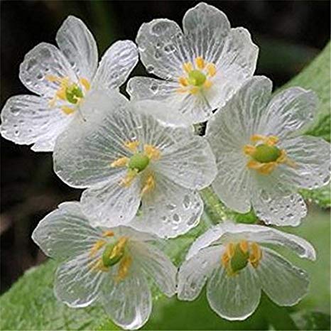 گل اسکلتی Diphylleia grayi این گیاه جنگلی دارای گلبرگهایی به رنگ سفید می باشد که رنگ آنها هنگام تماس با رطوبت یا قطرات باران به رنگ شیشه ای شفاف تغییر میکند و پس از خشک شدن نیز به همان رنگ اولیه خود یعنی سفید بر می گردد.